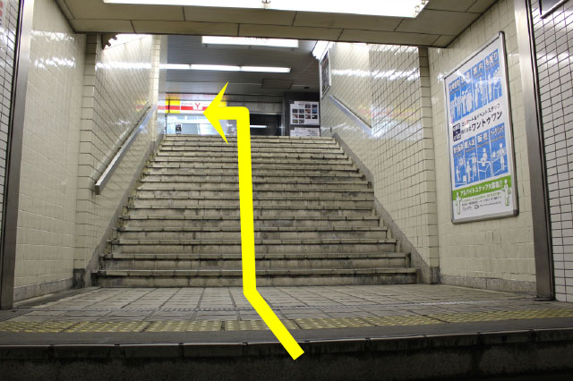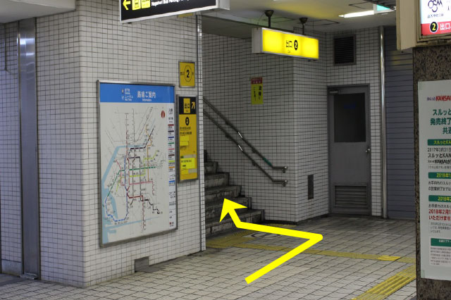 ①四ツ橋駅の北改札を出て2番出口から地上に上がります