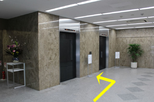 ・マクドナルドの隣(西側)のビルの正面玄関(自動ドア)から入ればエレベーターがあります。
